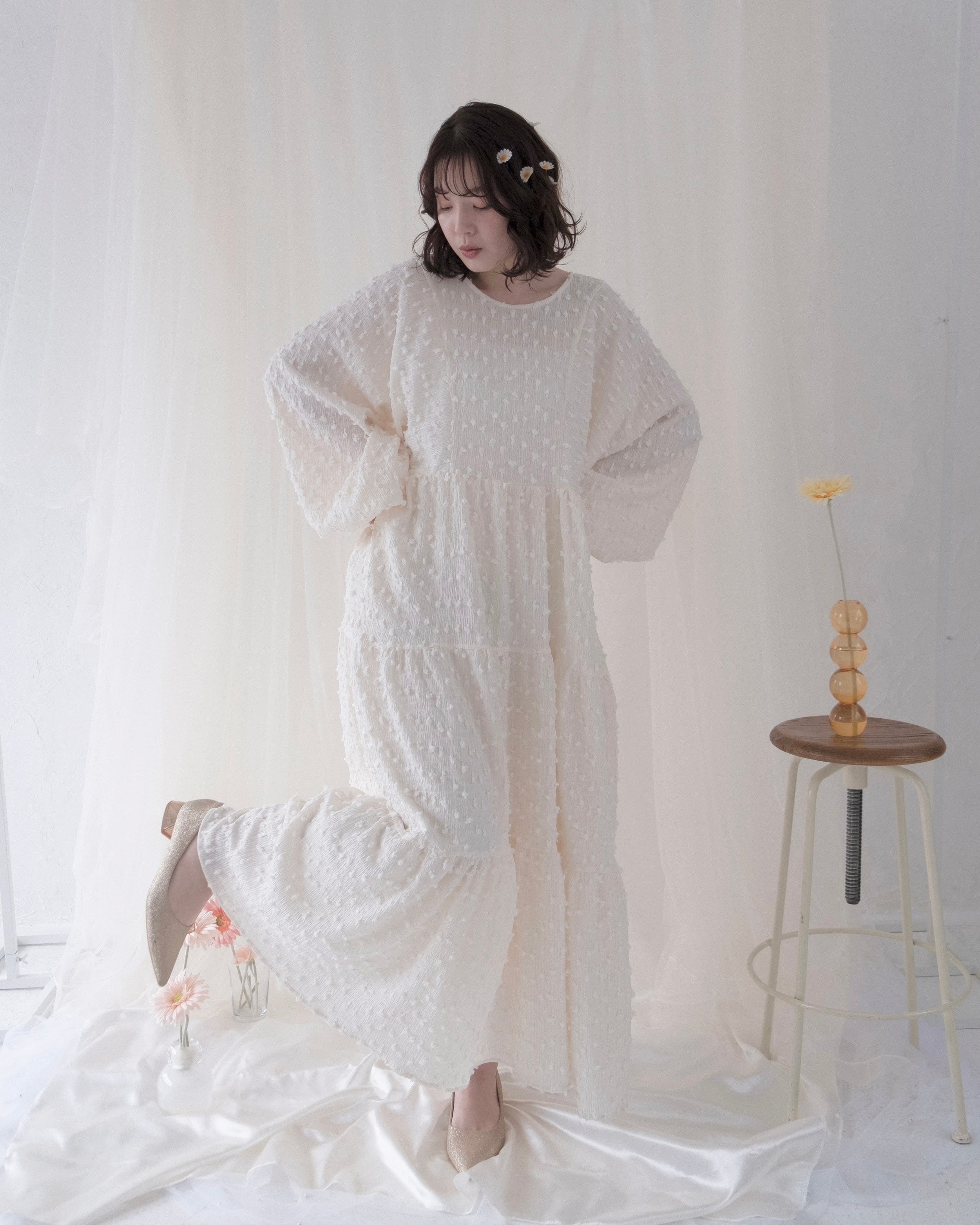 歩くたびにふんわりと揺れるシルエットが、女性らしい柔らかさを引き立てます。